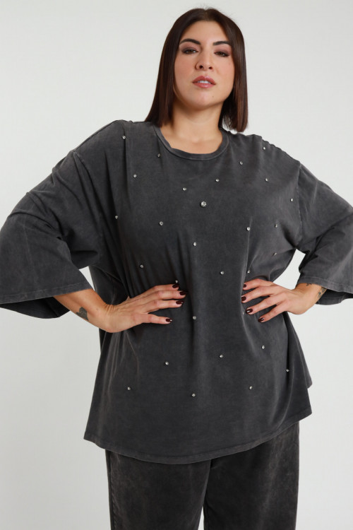 Maxipullover mit U-Boot-Ausschnitt, 3/4-Ärmel – Linie Curvy Susy Star. 57 % pc 29 % pa 7 % wo 7 % vi