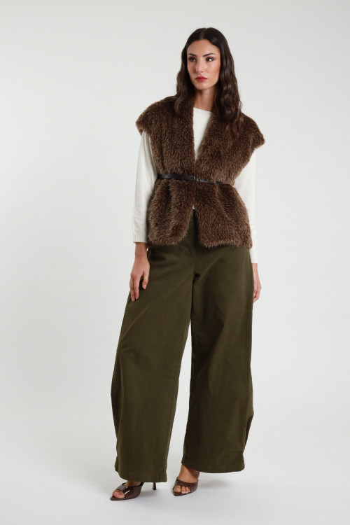 Gerade Beinhose mit Verschluss zu einem Knopf und elastisch auf der Rückseite. 96%PL 4%EA