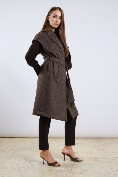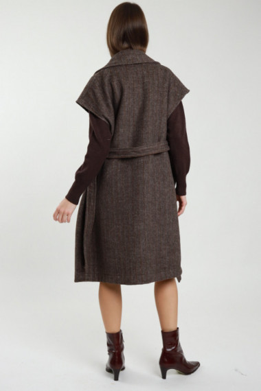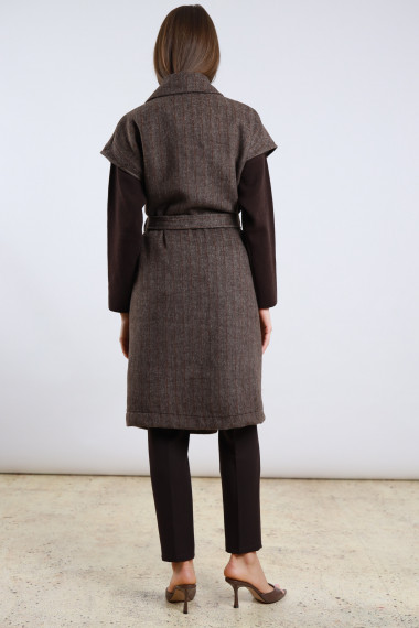 Lange Weste mit Rever und Gürtel im Leben. Seitentaschen mit Portfolio. 65%PL 30%AC 5%EA