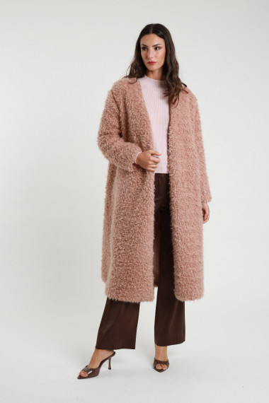 Langer Mantel aus Ökofell mit Seitentaschen. 100%pl