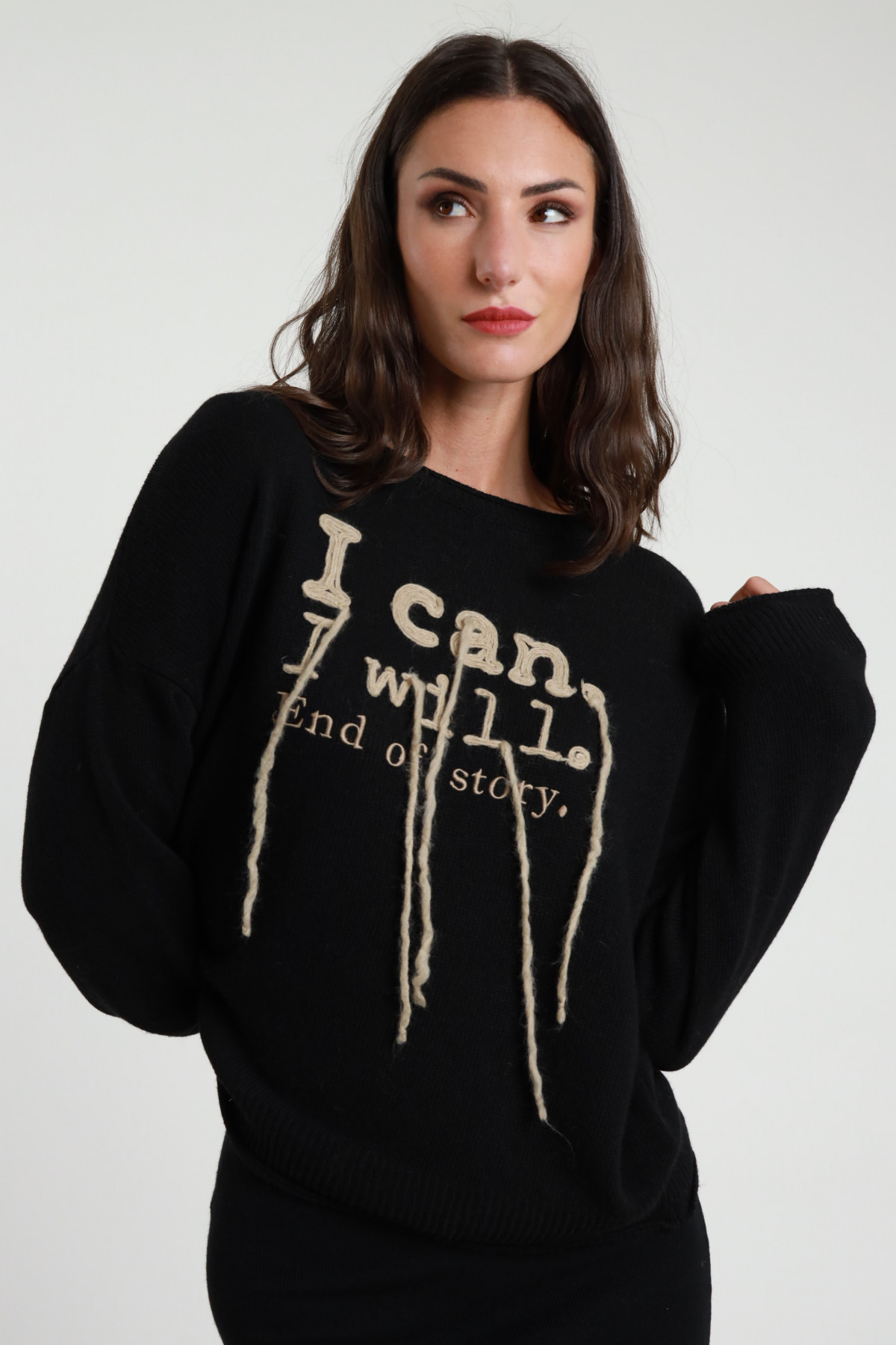 Pullover mit Rundhalsausschnitt und gesticktem Schriftzug. 40 %vi 30 %pa 25 %wo 5 %ws