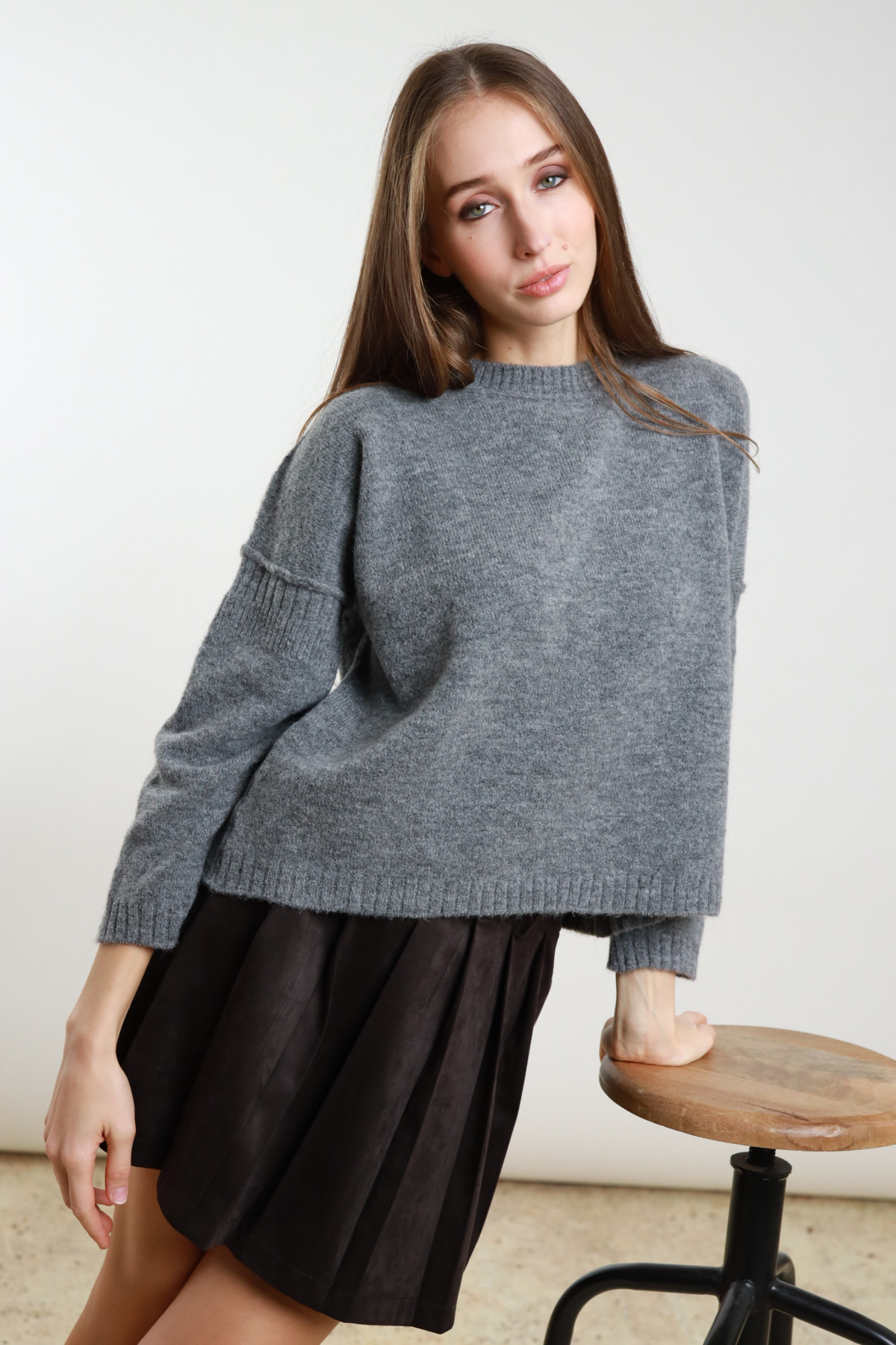 Pull Girocollo con Orli a Costine e Dettagli Cuciture.