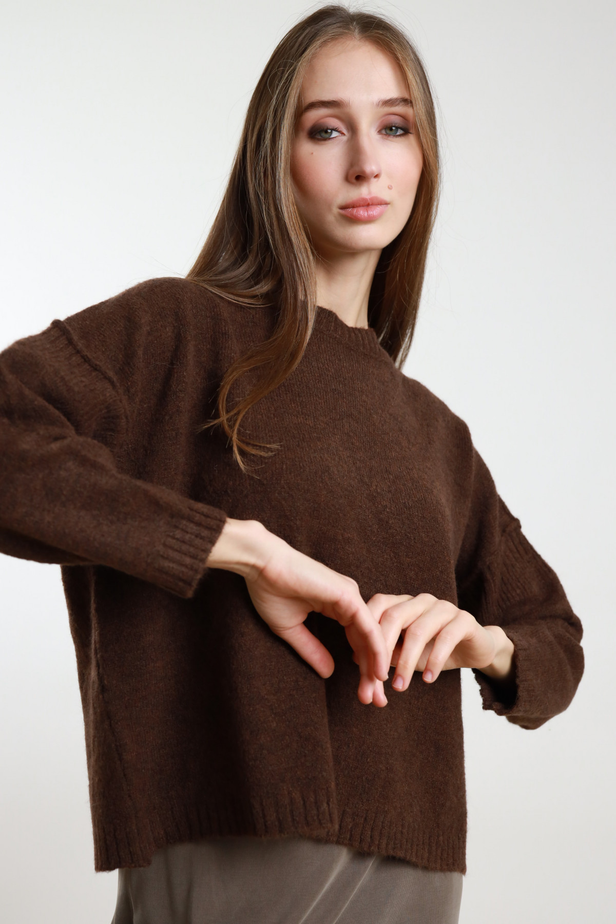 Pull Girocollo con Orli a Costine e Dettagli Cuciture.