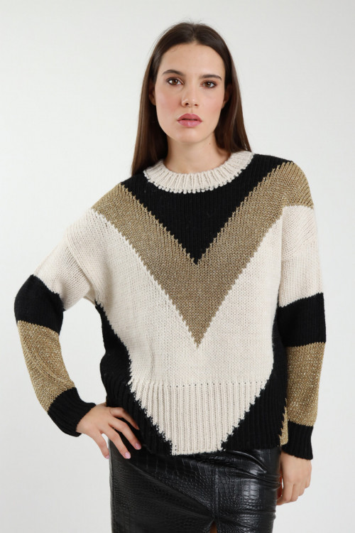 Maglia Multicolor Scollo a Barchetta con Inserti a Costine.