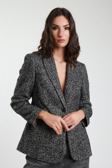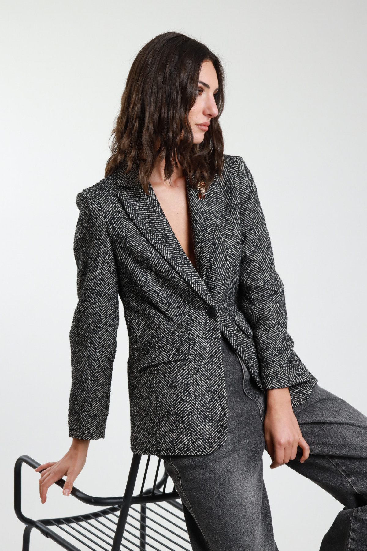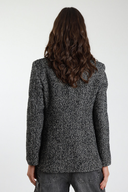 Giacca Over Maculata Effetto Peloso. Rever Classico e Tasche a Filetto con Pattina.