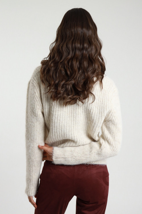 Strickjacken mit halbtransparenten Ballonknöpfen und Ärmeln schließen. 56%VI 28%PL 16%PA