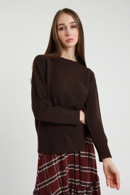 Pullover mit U-Boot-Ausschnitt und ausgestelltem Hintergrund. 50 % vi 27 % pl 23 % pa