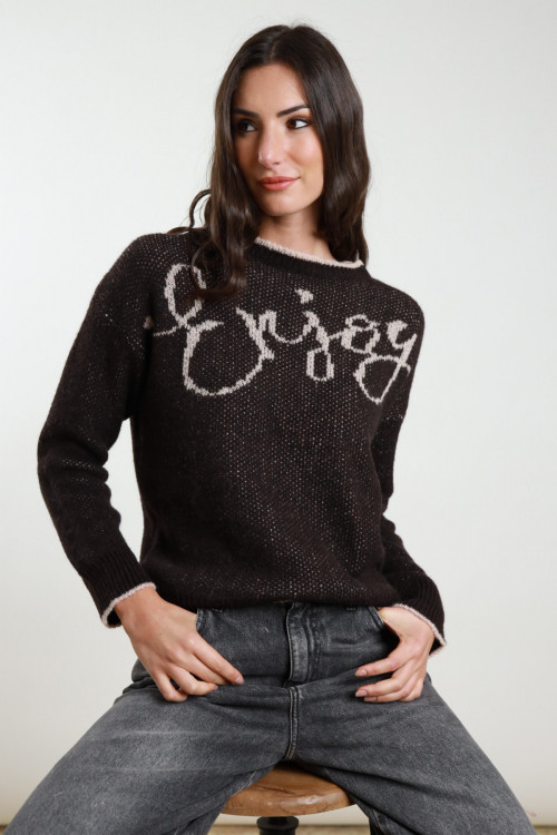 Pullover mit Rundhalsausschnitt und Schriftzug „Enjoy“. 55%pc 28%pa 7%vi 7%wo 3%pl
