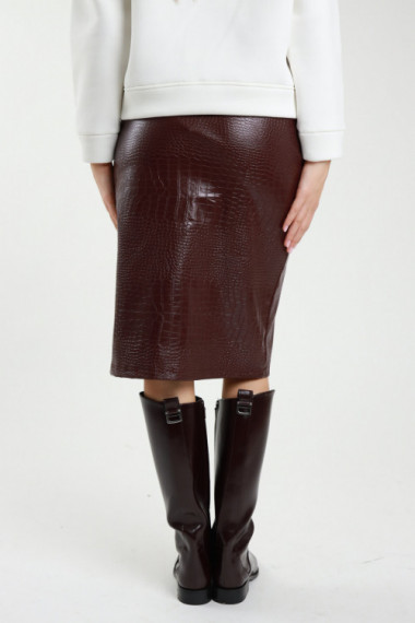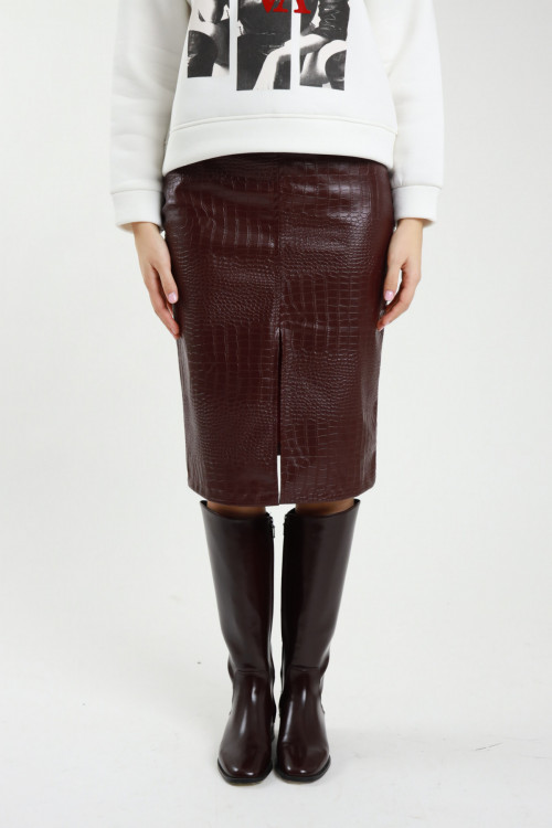Rock aus Kunstleder in Kroko-Optik mit Schlitz vorne. 50 % pl 50 % pu