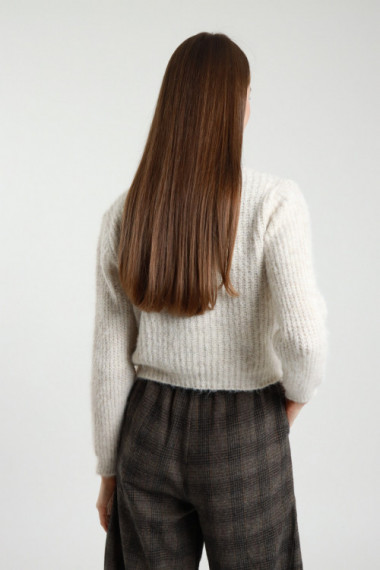 Jacket cutting sweater with flourishing revers. 75%PC 10%WO 10%VI 5%WP