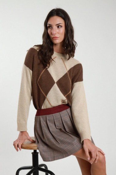 Pullover mit Rauten vorne, Rundhalsausschnitt und Kaschmir. 45%wo 25%vi 20%ny 10%ws