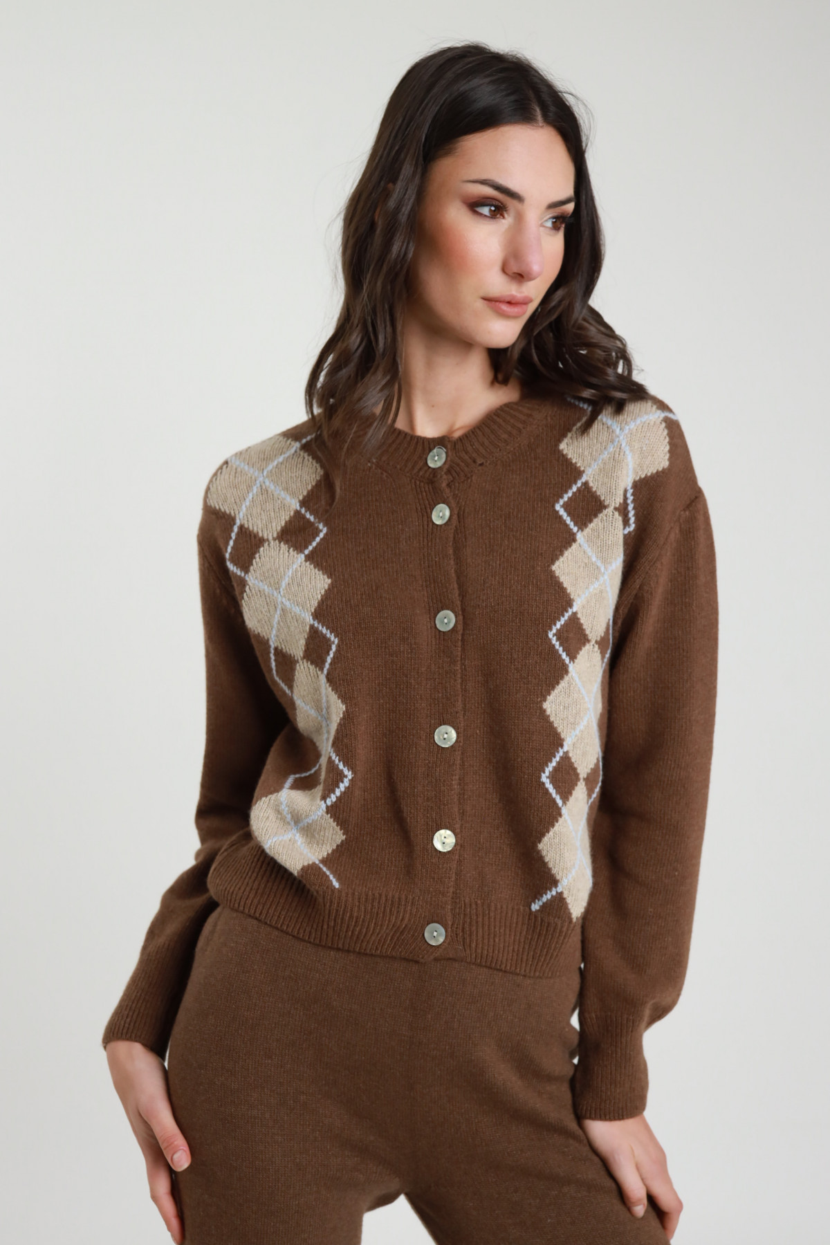 Cardigan closing of buttons with embroidered dog. 57%PC 29%PL 7%WO 7%VI