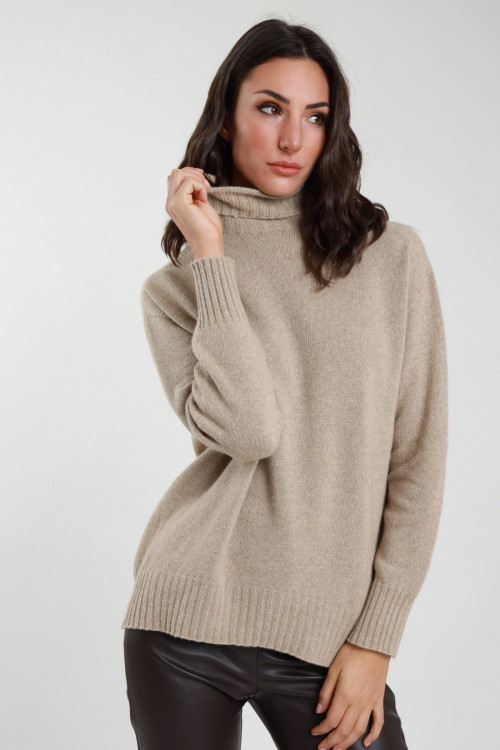 Maglia in Maglia con Zip con Collo Over e Fantasia Check