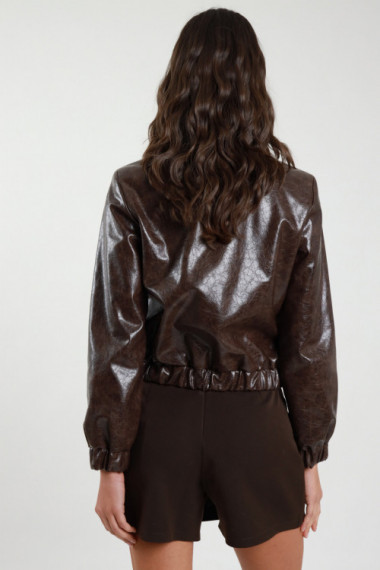 Giacca Over in Ecodainetto con Maniche a Pipistrello, Colletto e Chiusura con Zip. Tasche Laterali a Portafoglio.