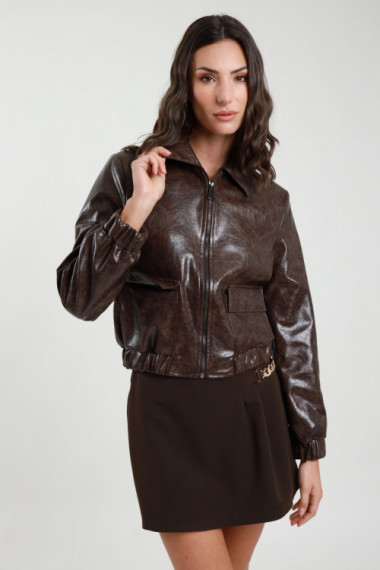 Bomber Spinato con Patch, Chiusura a Zip e Retro in Ecopelle. Tasca Grande Frontale.