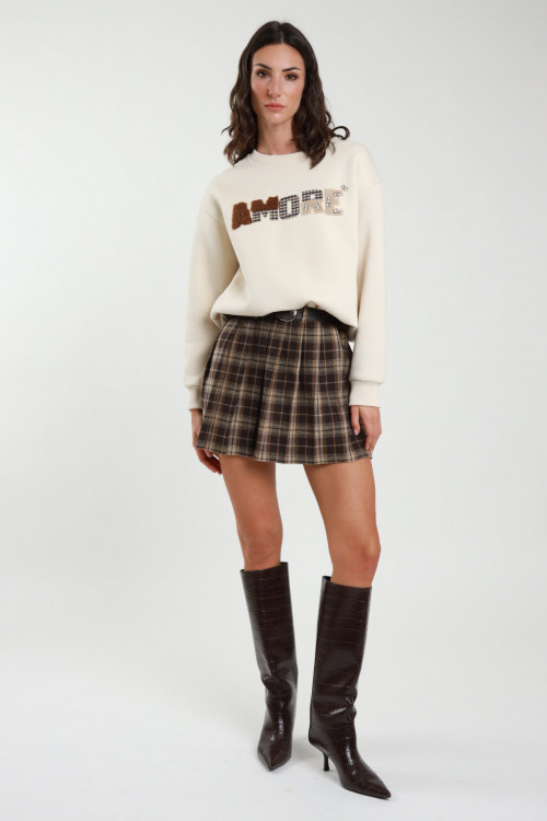 Rundhals-Sweatshirt mit „Love“-Schriftzug und Plüsch- und Strasseinsätzen. 65%co 35%pl