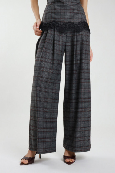 Gerade Hose im Karomuster mit Falten und Seitentaschen. 63 %pl 34 %vi 3 %ea