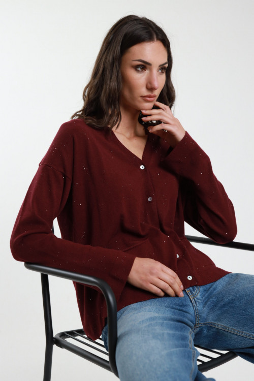 Gilet in Bouclé con Inserti in Lurex. Senza Chiusura.
