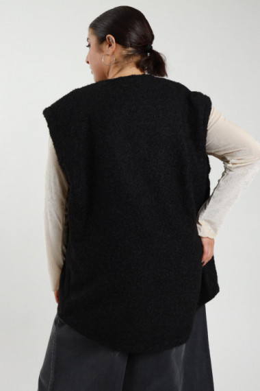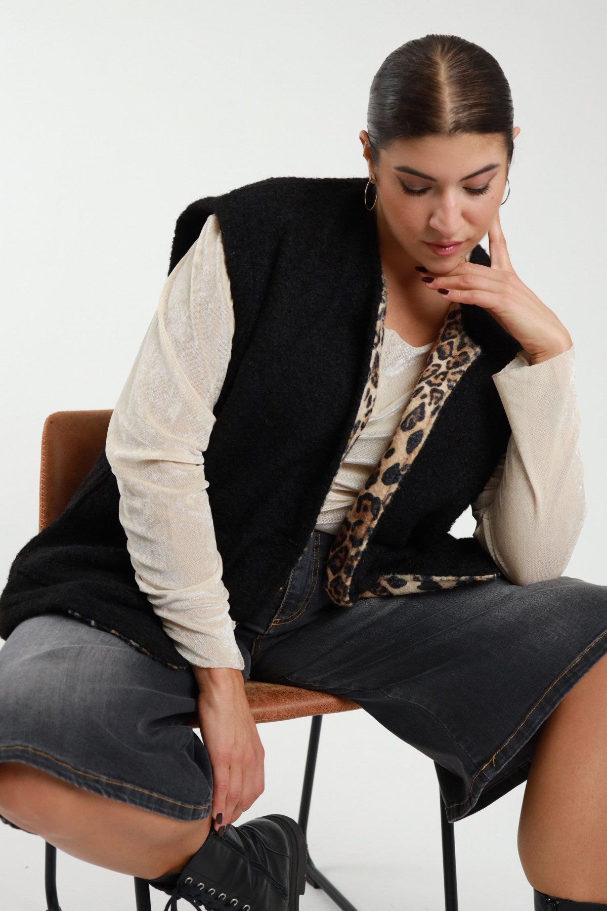 Ärmellose Weste aus gekochter Wolle mit Vordertaschen und Animalier-Punktmuster auf der Innenseite – Curvy Susy Star Line.  100%pl