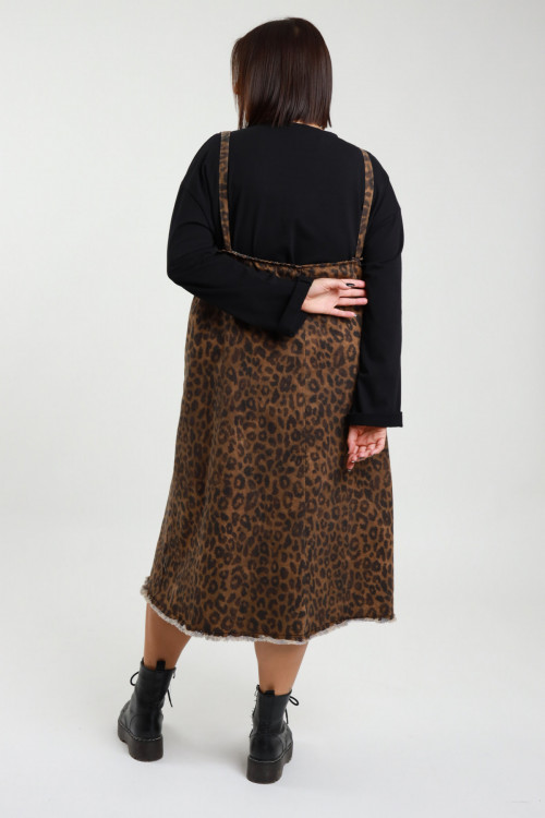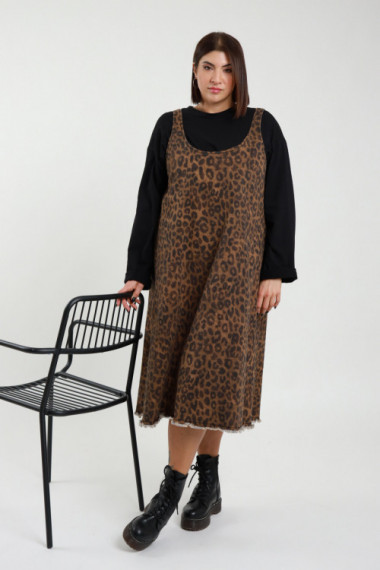 Abito Midi in Stampa Animalier Maculata con T-shirt a Maniche Lunghe - Linea Curvy Susy Star.