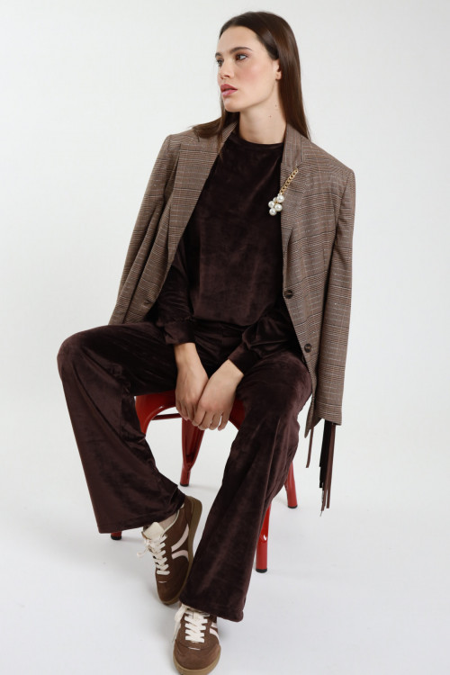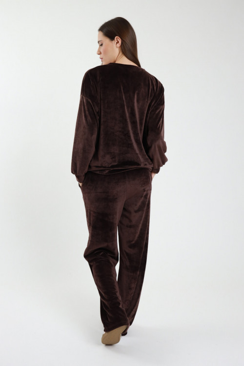 Chenille-Trainingsanzug-Set bestehend aus einer Hose mit weitem Bein und einem übergroßen Sweatshirt mit Rundhalsausschnitt. 95 % pl 5 % Stück