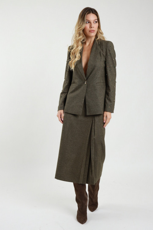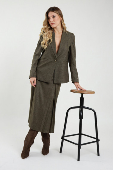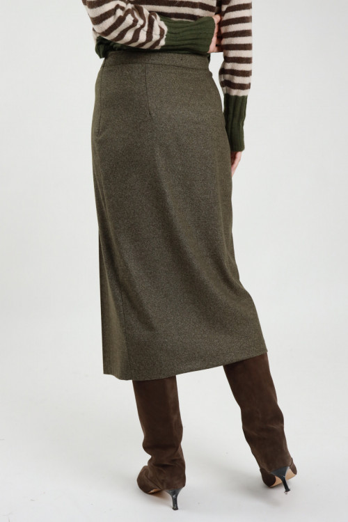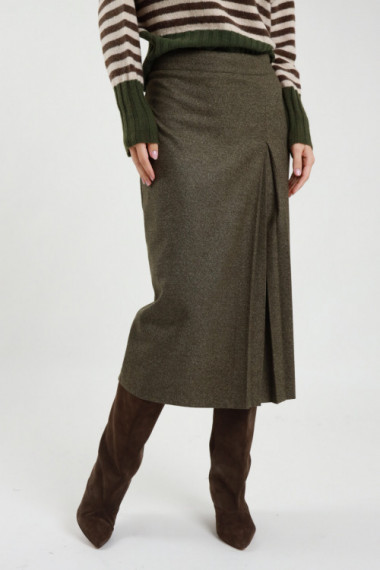Ausgestellter Midirock mit Falteneinsatz vorne. 65 %pl 33 %vi 2 %ea
