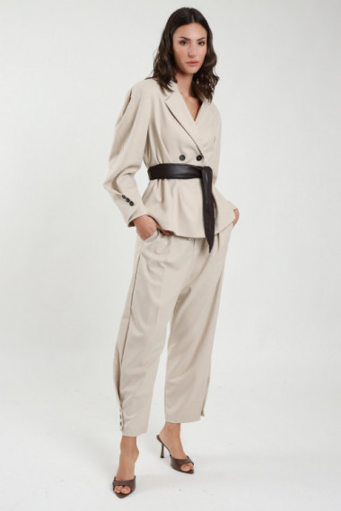 Zweireihige Jacke aus schwerem Stoff mit Volant am Ärmel und Knopf an der Manschette. 65%pl 33%vi 2%ea+100%pl