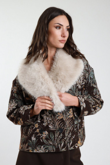 Giacca Over Maculata Effetto Peloso. Rever Classico e Tasche a Filetto con Pattina.