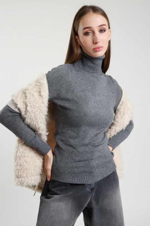 Loose Fit Cashmere Turtleneck with Ribbed Hems and Cut-Out. 45%wo 25%vi 20%ny 10%ws