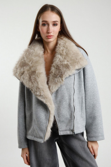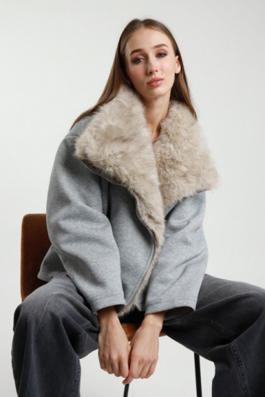 Sweatshirtjacke mit Kunstfell-Ausschnitt. Reißverschluss. 65%co 35%pl