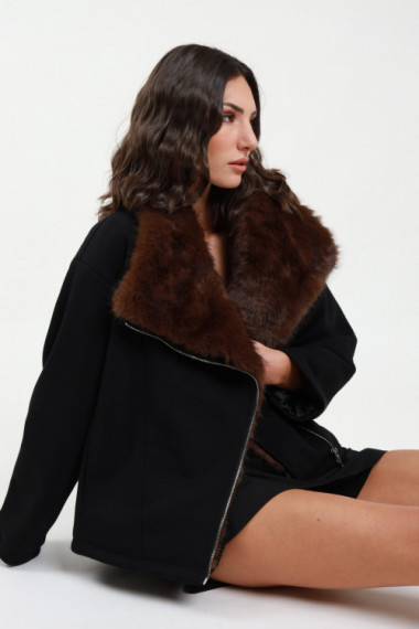 Sweatshirtjacke mit Kunstfell-Ausschnitt. Reißverschluss. 65%co 35%pl