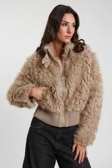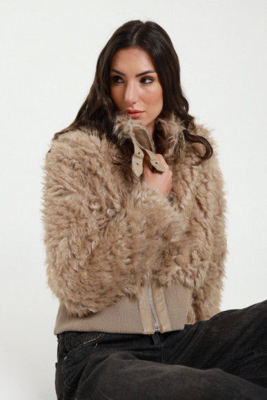Bomberjacke aus Kunstfell mit Reißverschluss.  100%pl
