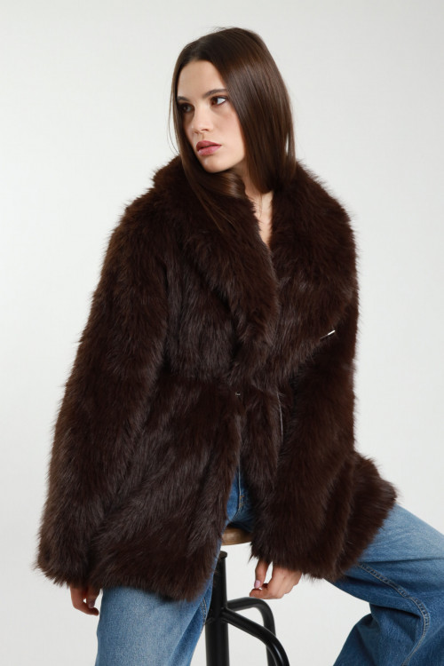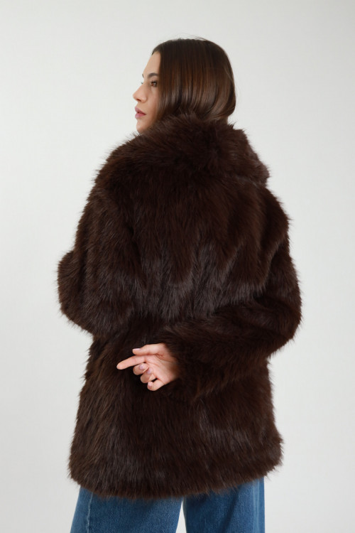 Cappottino Peloso con Rever Classico, Due Tasche Frontali a Toppa e Chiusura un Bottone.