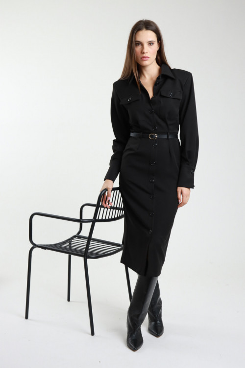 Midi-Hemdkleid mit Gürtel und zwei Vordertaschen. 77 %pl 17 %vi 6 %ea