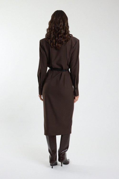 Midi-Hemdkleid mit Gürtel und zwei Vordertaschen. 77 %pl 17 %vi 6 %ea