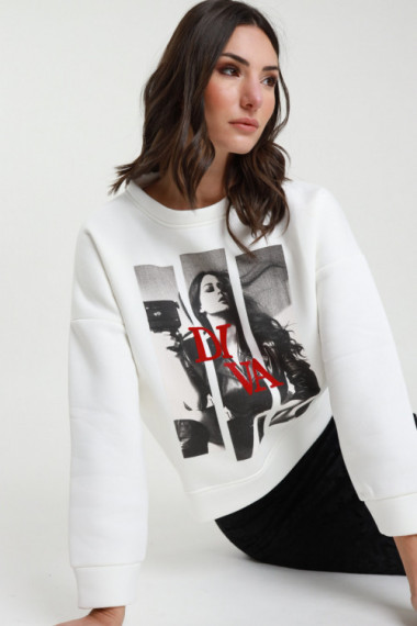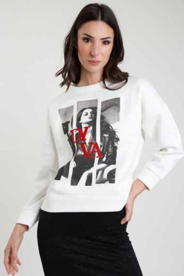 Sweatshirt mit Diva-Print und Rundhalsausschnitt. 70%co 30%pl