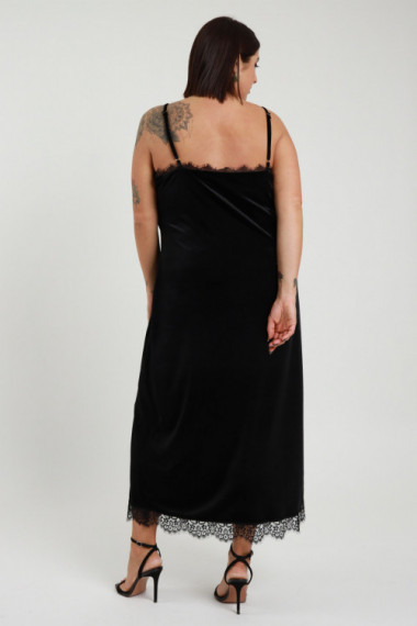 Langes ausgestelltes Kleid, V-Ausschnitt mit Knopf – Linie Curvy Susy Star. 100%pl