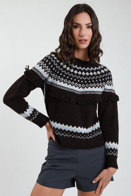 Pullover mit Rundhalsausschnitt und gesticktem Schriftzug. 40 %vi 30 %pa 25 %wo 5 %ws