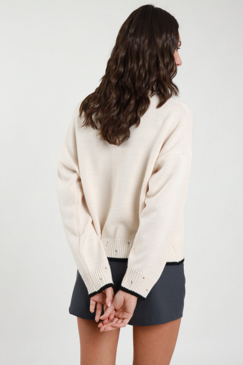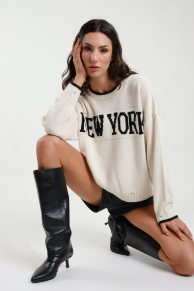 Maglione Girocollo Bicolor Con Collo E Scritta "New York" A Contrasto. 75%ac 10%vi 10%wo 5%wp