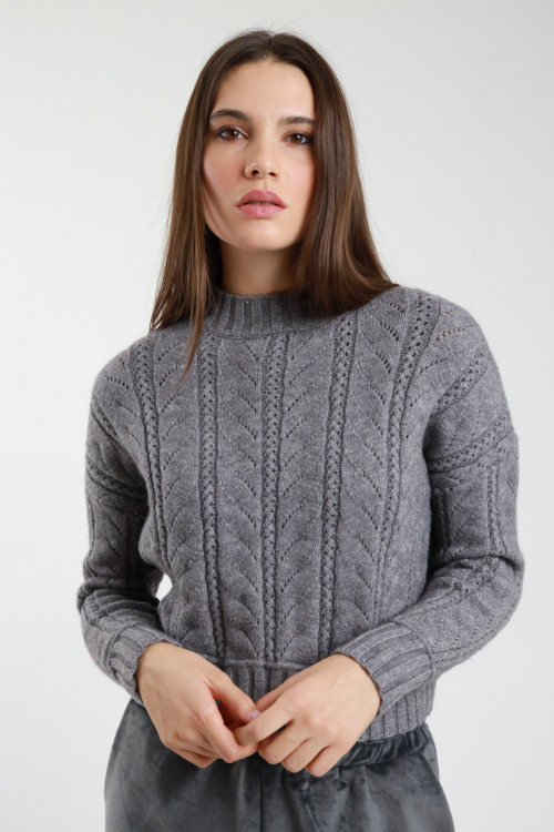 Maglia Girocollo Crop Costa Inglese, Bordo Intrecciato.
