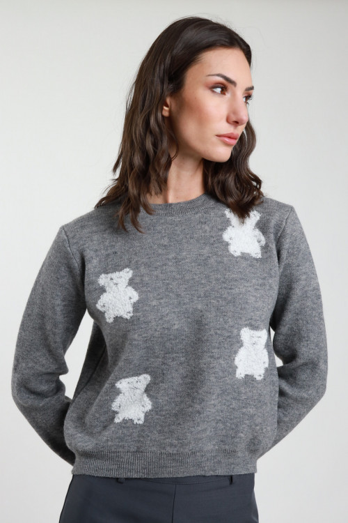 Maglia Girocollo a Righe con Dettaglio Bordi a Contrasto.