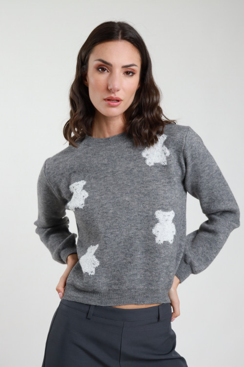 Maglioncino Sottile Girocollo Crop con Pizzo e Spacchi sul Fondo.