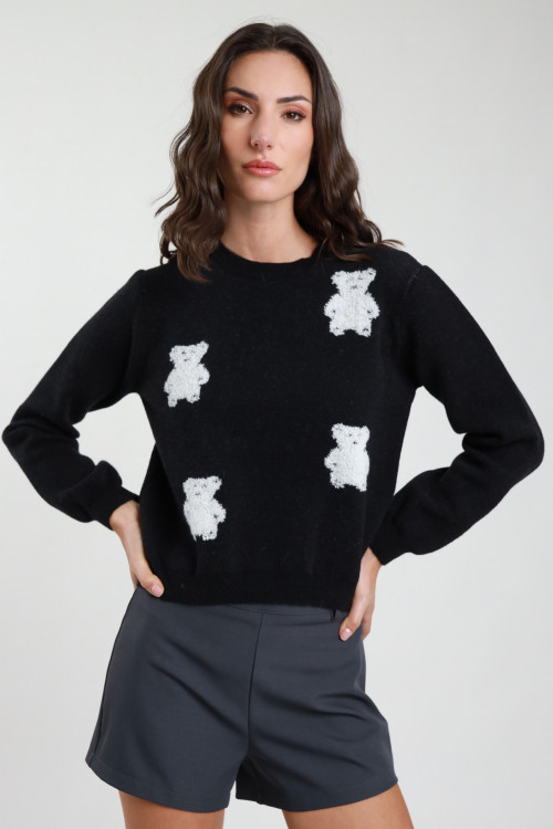 Maglioncino Sottile Girocollo Crop con Pizzo e Spacchi sul Fondo.