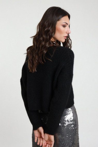 Cardigan Crop Chiusura 2 Bottoni con Micro Paillettes.