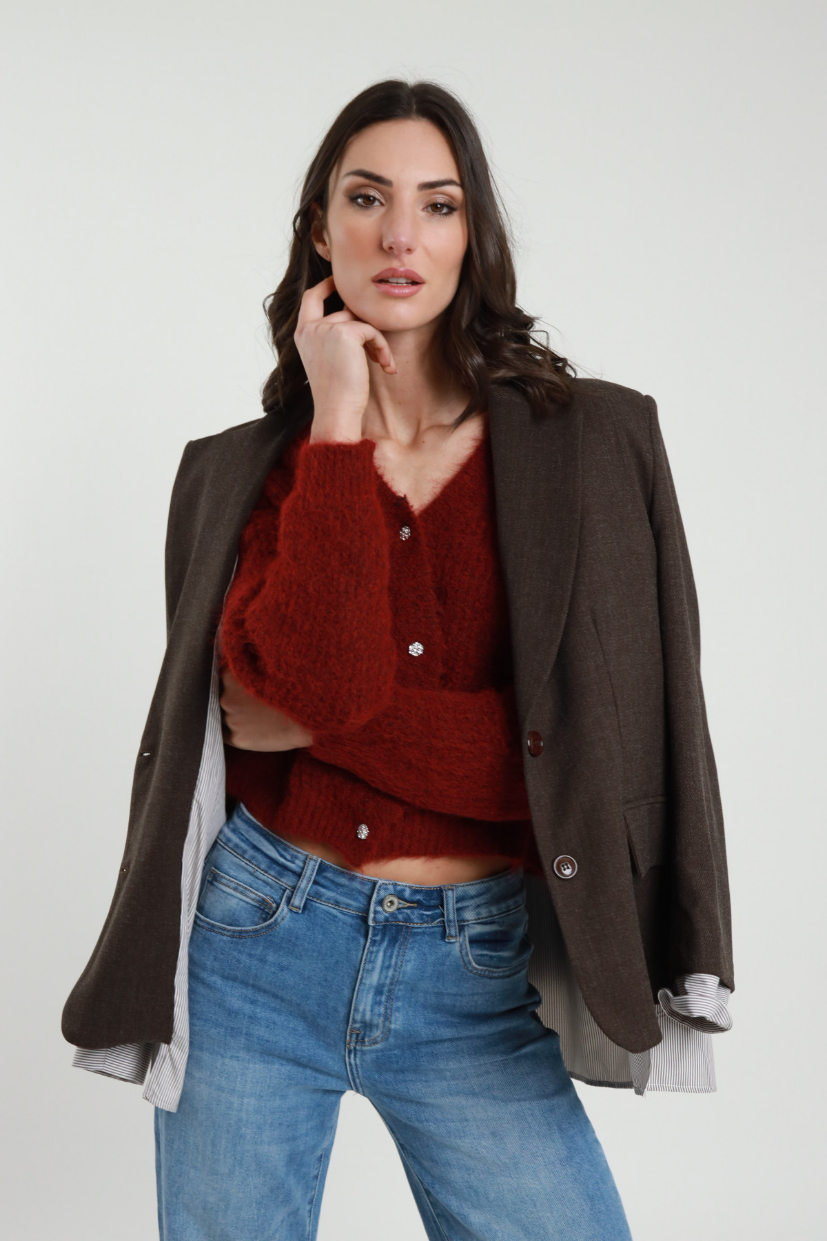 Cardigan Crop e Slim con Chiusura a Bottoni Gioiello di Diverso Tipo.
