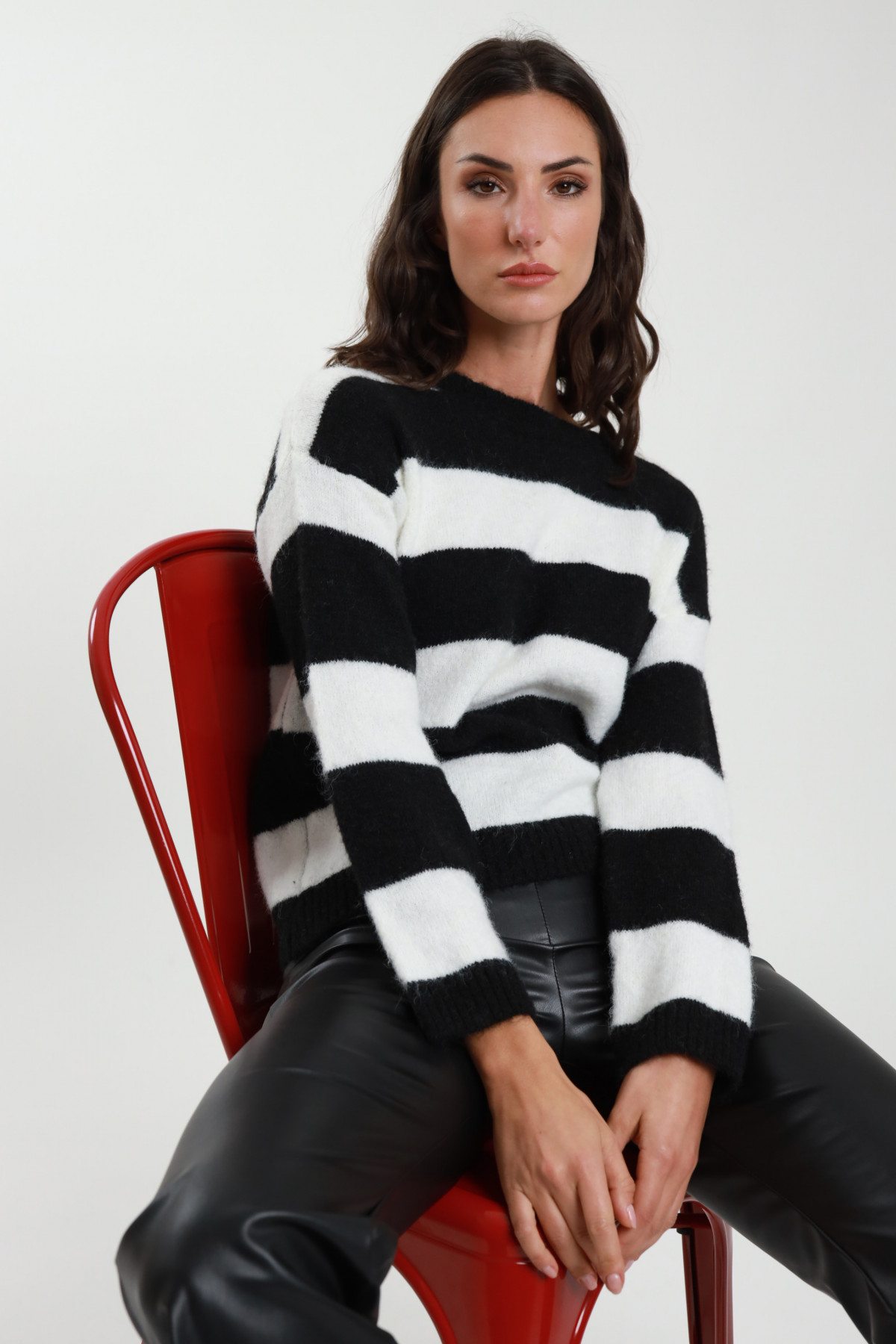 Gestreifter Pullover mit Rundhalsausschnitt. 50 % Stück, 30 % Stück, 10 % Wo, 10 % Stück