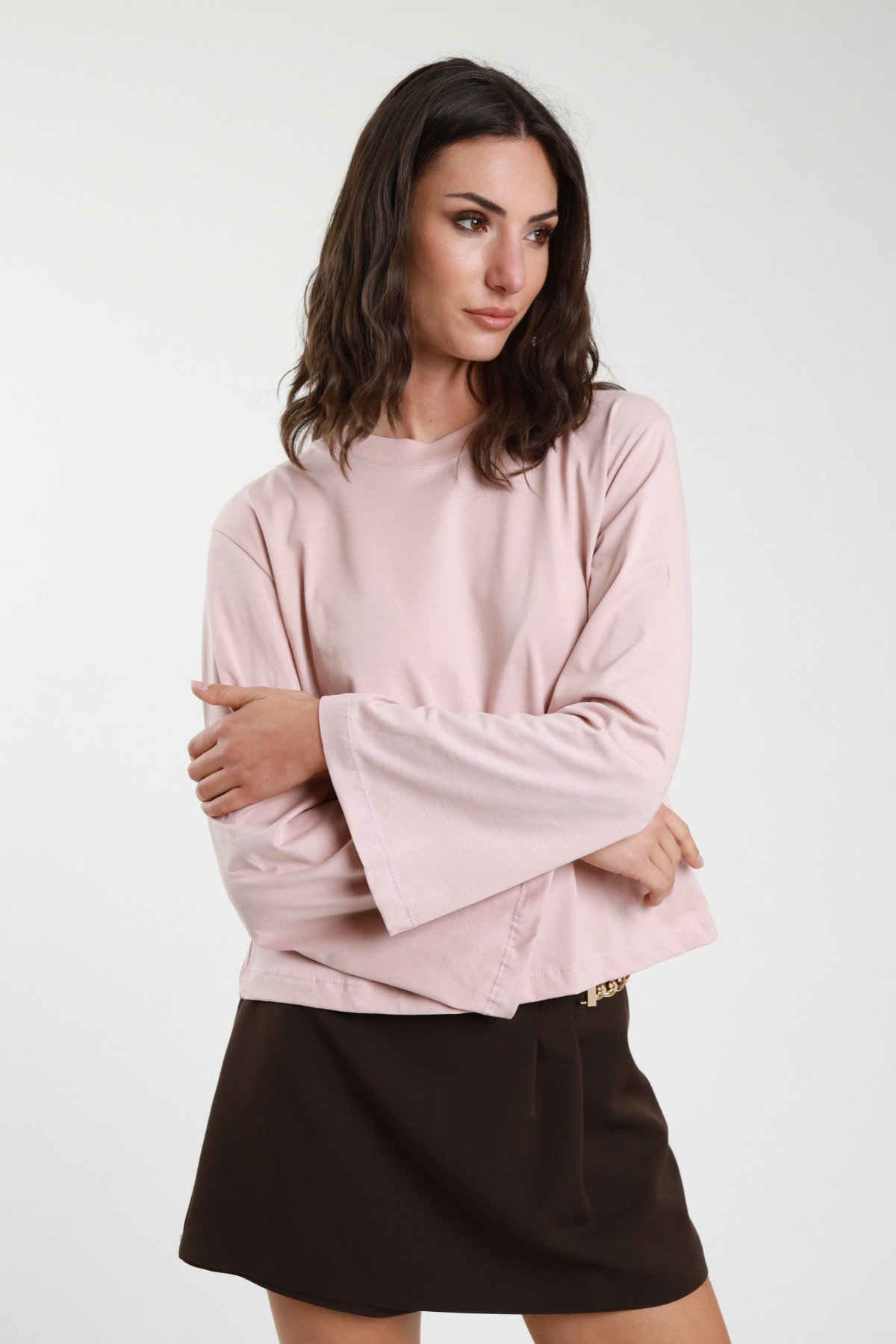 T-Shirt mit Rundhalsausschnitt, langen und weiten Ärmeln. 100 % co