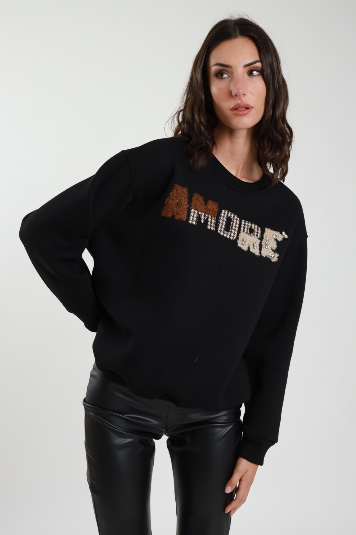 Felpa Girocollo Over Maniche Lunghe con Ricamo ''More Love'' sul Fronte.