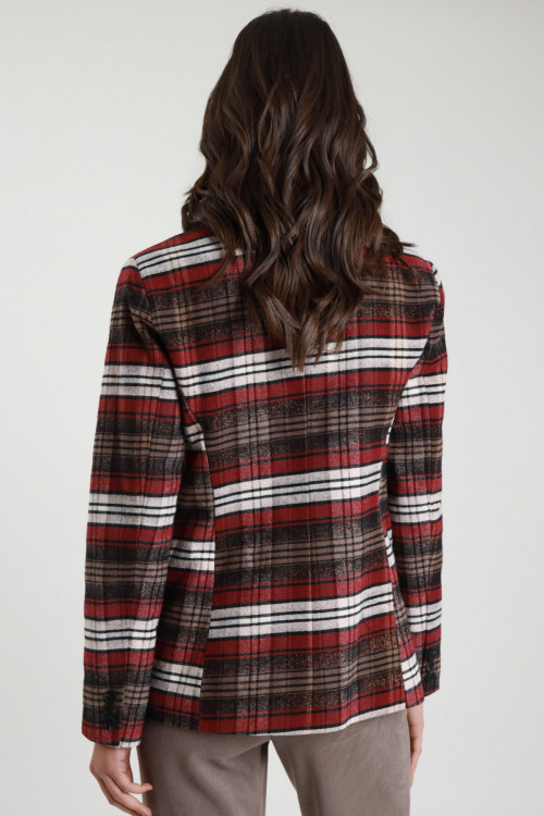 Giacca Check e Lurex, con Rever Classico, Cintura e Tasche Frontali a Filetto con Pattina.