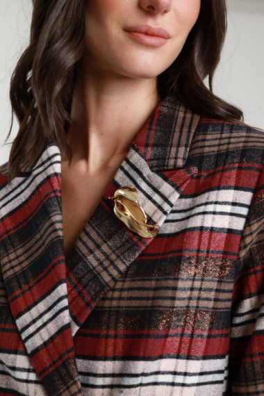 Blazer Over in Fantasia Check, Dettaglio Spille sul Rever Rimovibili, Tasche Filetto con Pattina.